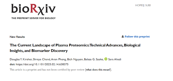 以上結果來自2025年2月14日Alkahest Inc.的Sara Ahadi團隊發表在bioRxiv的名為“The Current Landscape of Plasma Proteomics: Technical Advances,Biological Insights, and Biomarker Discovery"研究。